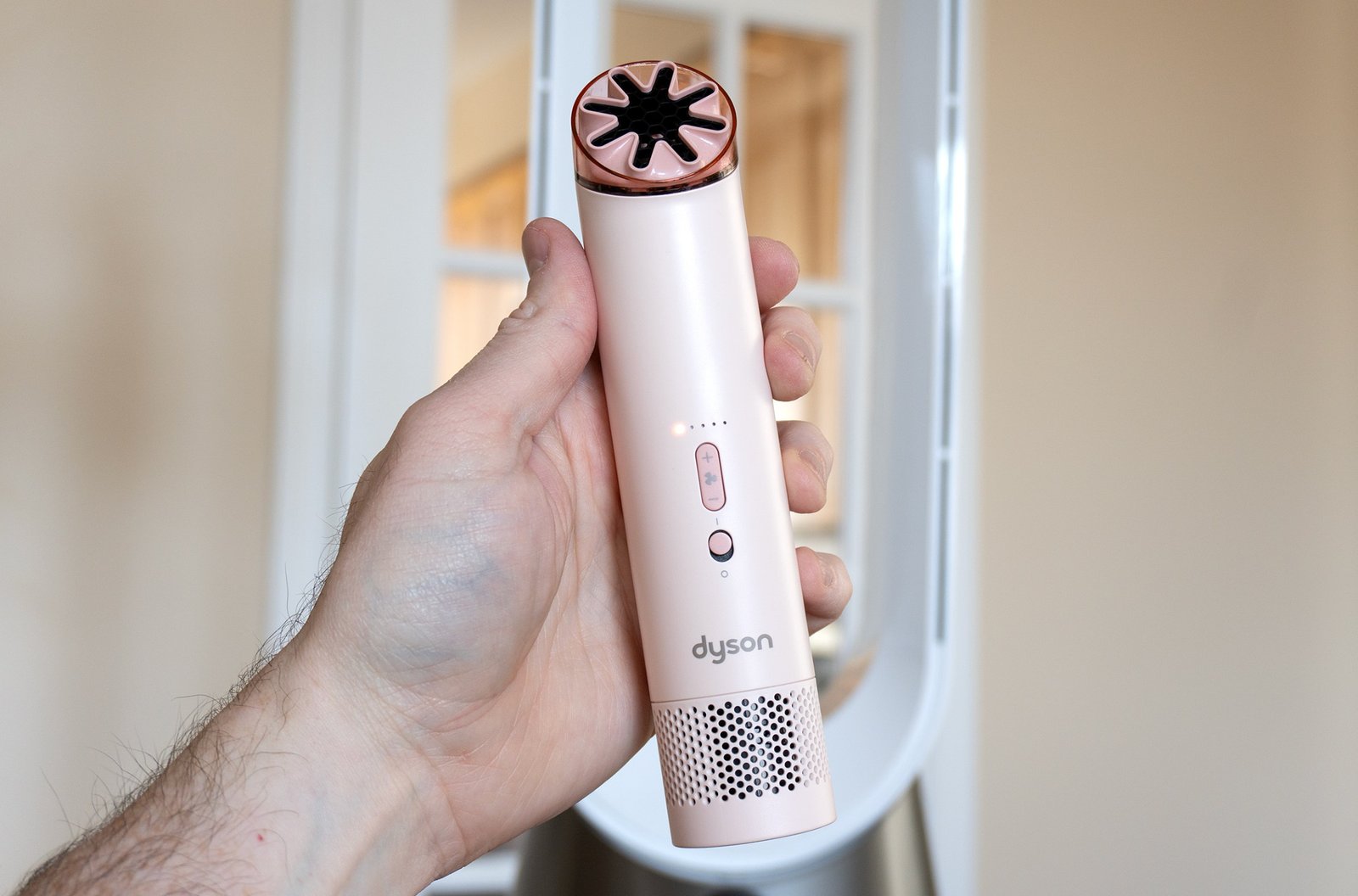 It doesn’t get anywhere near as loud as Dyson’s cordless vacuums or hair dryers, but the HushJet Mini Cool isn’t whisper-quiet, even at its lowest setting. The handheld fan also has a similar high-pitched whine as those other Dyson devices, despite its tiny electric motor spinning at less than half the speed of theirs.