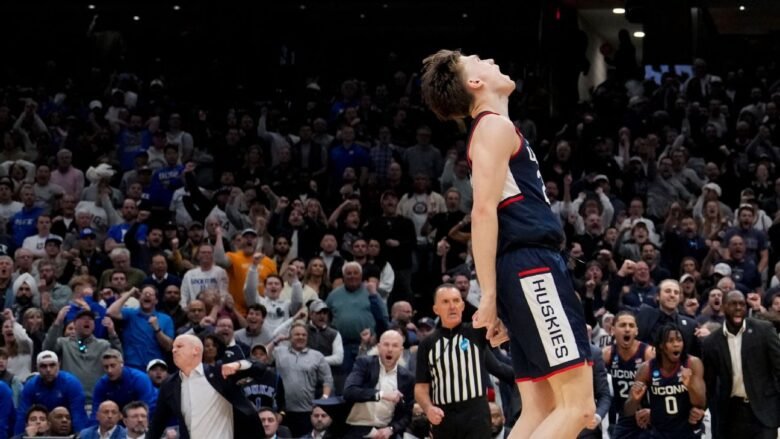 The Blue Devils led by three before UConn’s Silas Demary Jr. made one of two free throws with 10 seconds left. With Duke playing keep-away to prevent the Huskies from fouling, Cayden Boozer’s pass near midcourt was deflected, and after UConn came up with the ball, Mullins made a shot from well beyond the 3-point line.